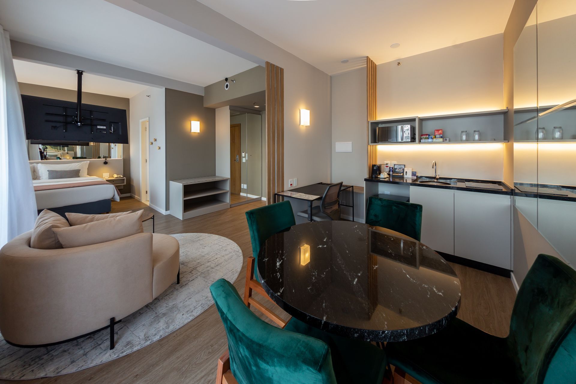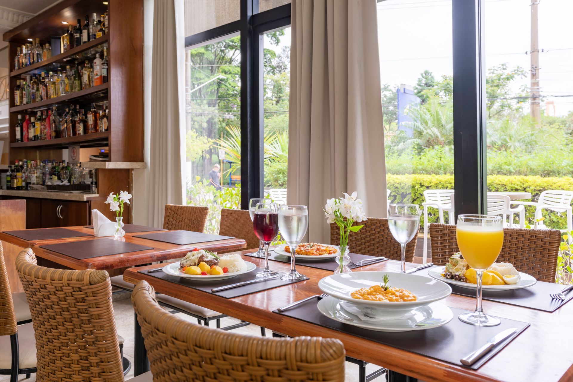 O hotel conta com suítes amplas, recentemente reformadas e decoradas com elegância, proporcionando uma experiência acolhedora e moderna. Os hóspedes desfrutam de uma ampla piscina, restaurante com serviço à la carte e room service 24h, além de um delicioso buffet de café da manhã, cuidadosamente preparado para começar bem o dia.