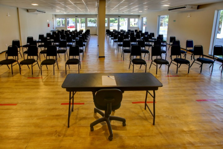 - Sala de eventos de 110 m², com ar-condicionado, Wi-Fi, capacidade para até 80 pessoas.
